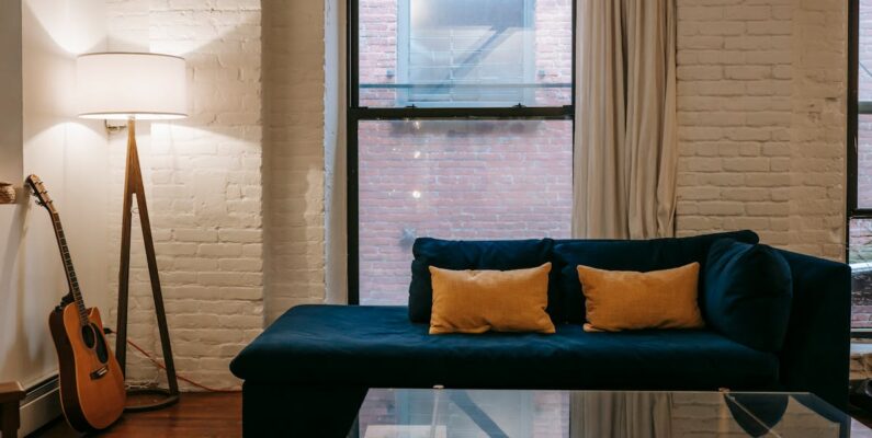 • Salon i pokój dzienny: panele akustyczne 30 – 50 mm za sofą, klosze lamp stojących, lekkie stoliki pomocnicze z rdzeniem z grzybni w ramie z drewna.